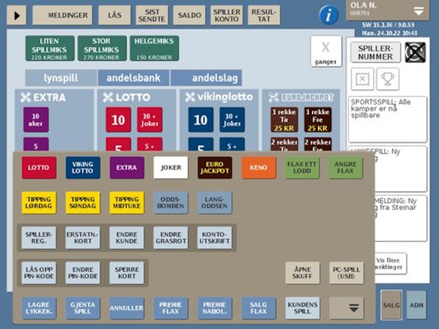 Alle operatører skal benytte sitt personlige operatørkort / Spillerkort og PIN-kode til disse tjenestene.