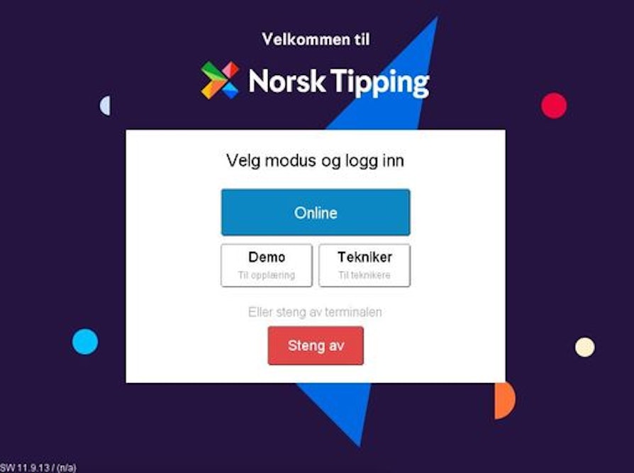 Når man skal logge på terminalen eller logger ut av Online-modus får man og valget Demo. Dette er en egen modus man kan benytte for opplæring til bruk av tippeterminalen.