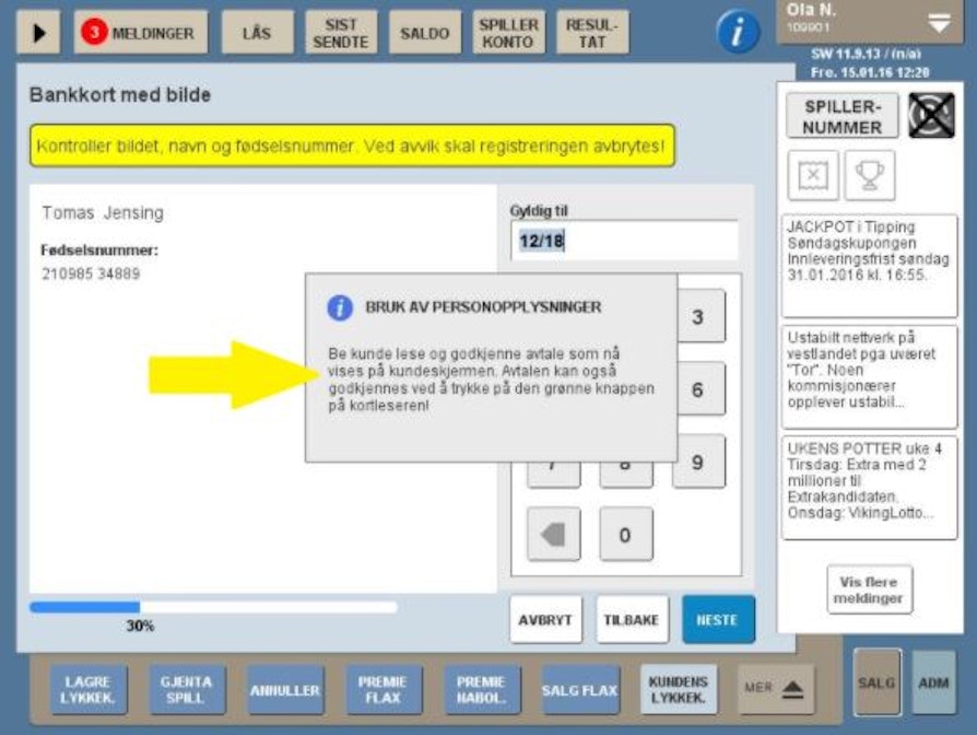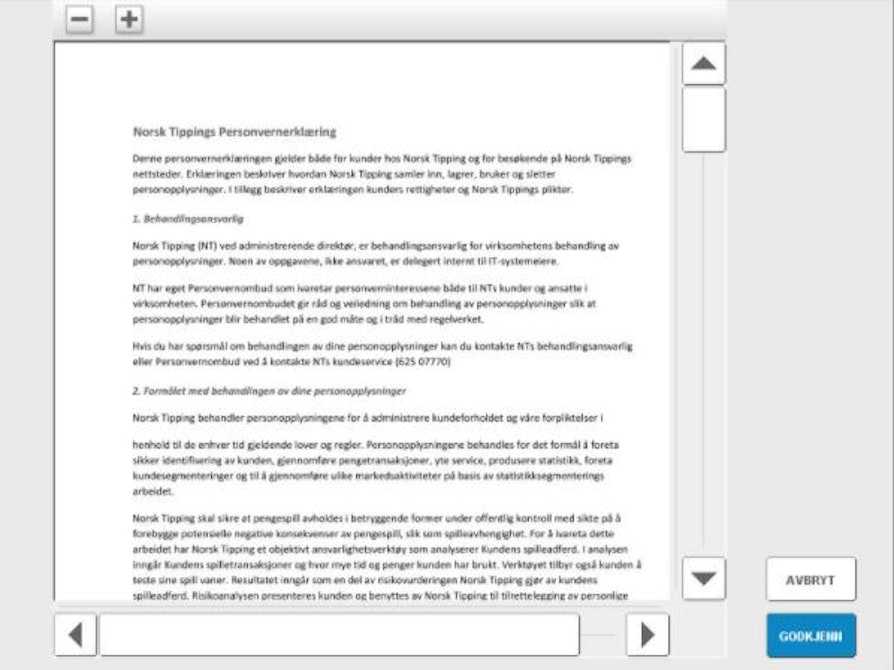Så skal kunden godkjenne en personvernerklæring som kommer opp på kundeskjermen.