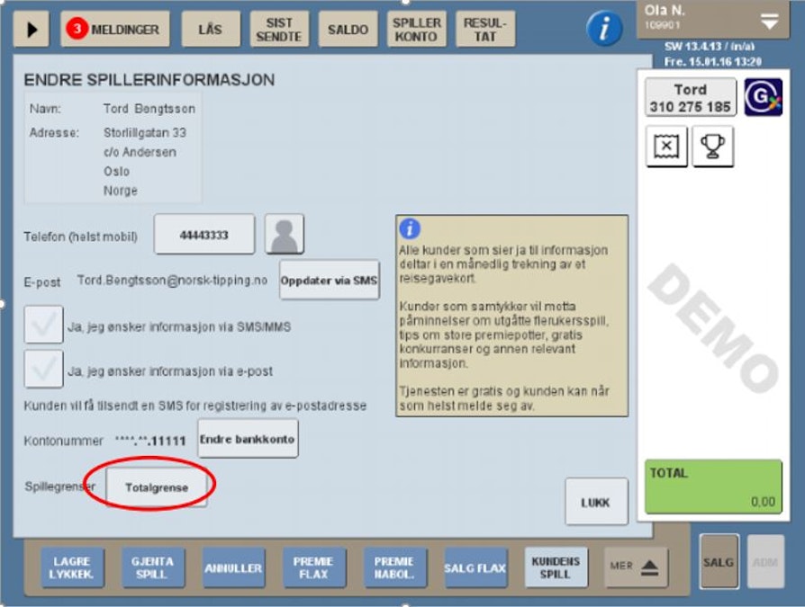 Inne på Endre spillerinformasjon vil det dukke opp en knapp med Totalgrense nederst på siden: