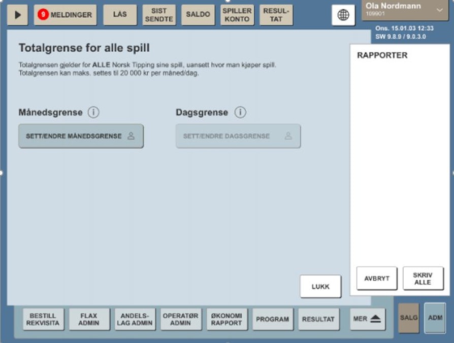 Endre totalgrense for spill