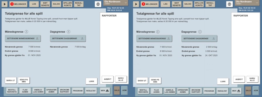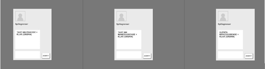 Når kunden skal sette grense vil det være tre steg, slik ser det ut på terminalen (det er også det samme for dagsgrensen):