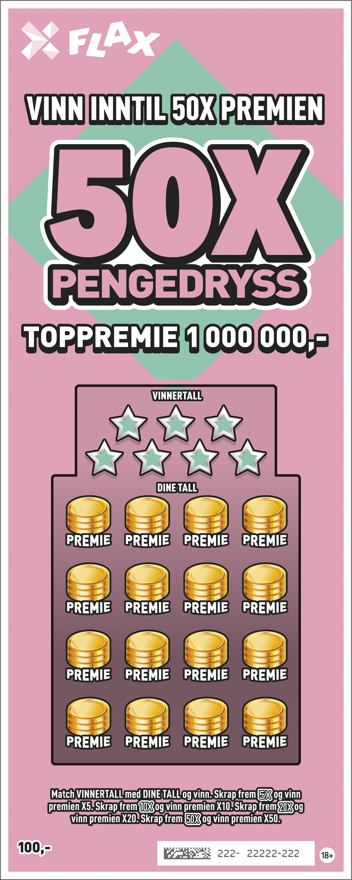 #583 Mega MillionFlax Loddpris: 100,- Siste aktivering: 31.05.2027